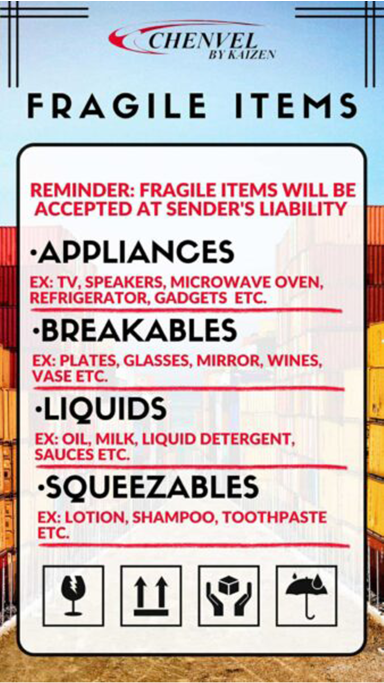 Reminders: fragile items willl be accepted at senderβs liability.